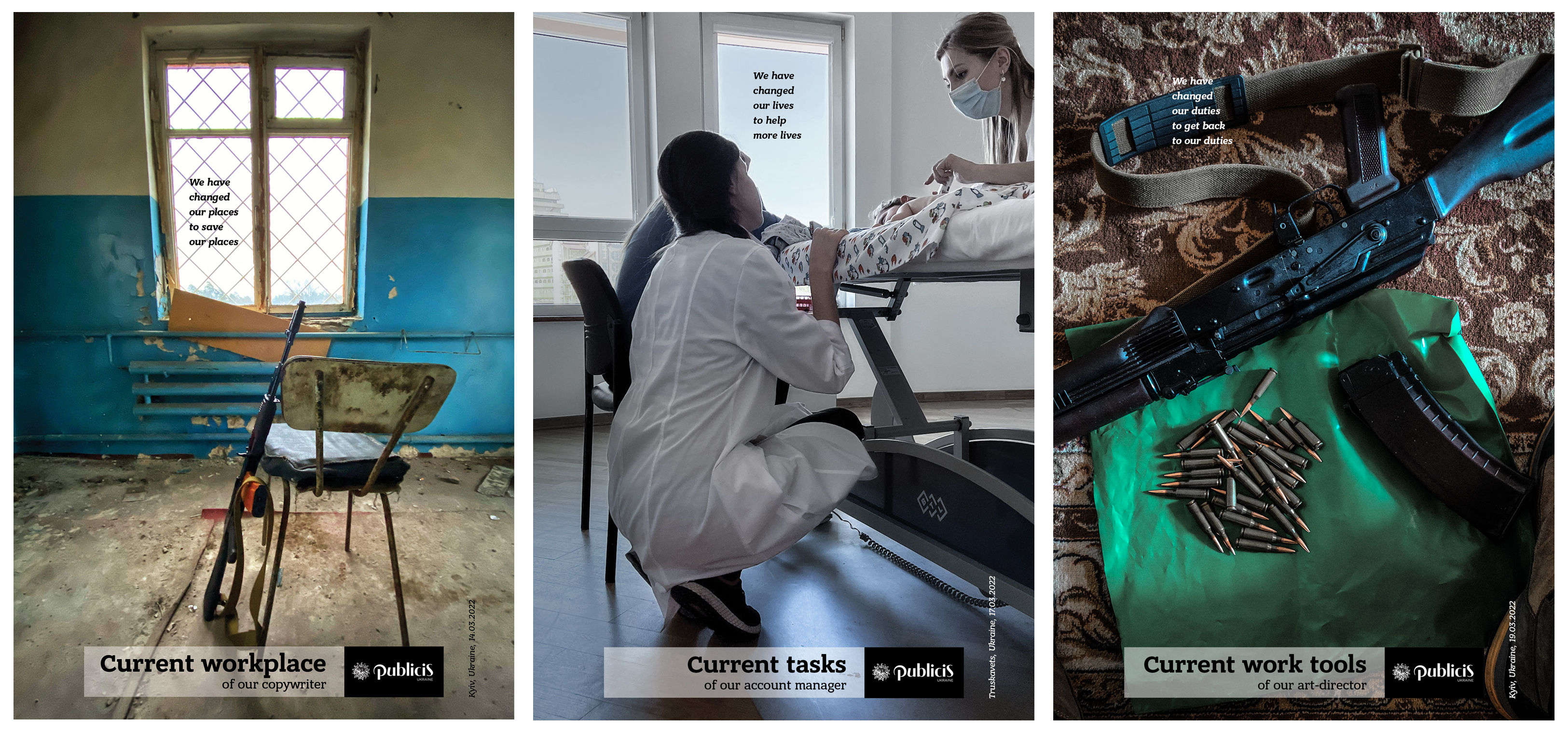 Publicis Groupe Ukraine, 2022. Our Current Workplaces. Role: Creative Bronze – Epica Awards, Lürzer’s Archive #2/2022, Bronze for series – KIAF